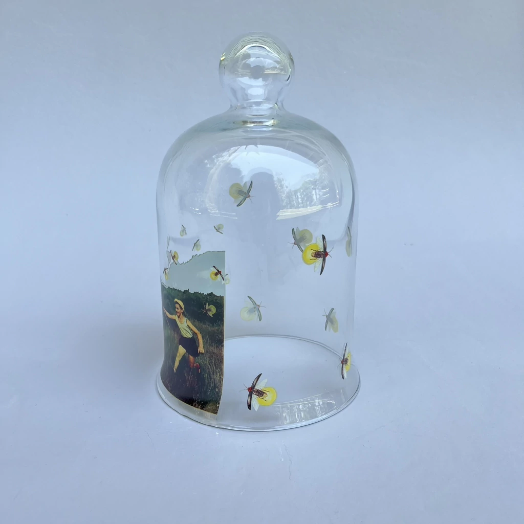 - Cúpula de vidro com aplicações retrô lindas de meninos caçando vagalumes.